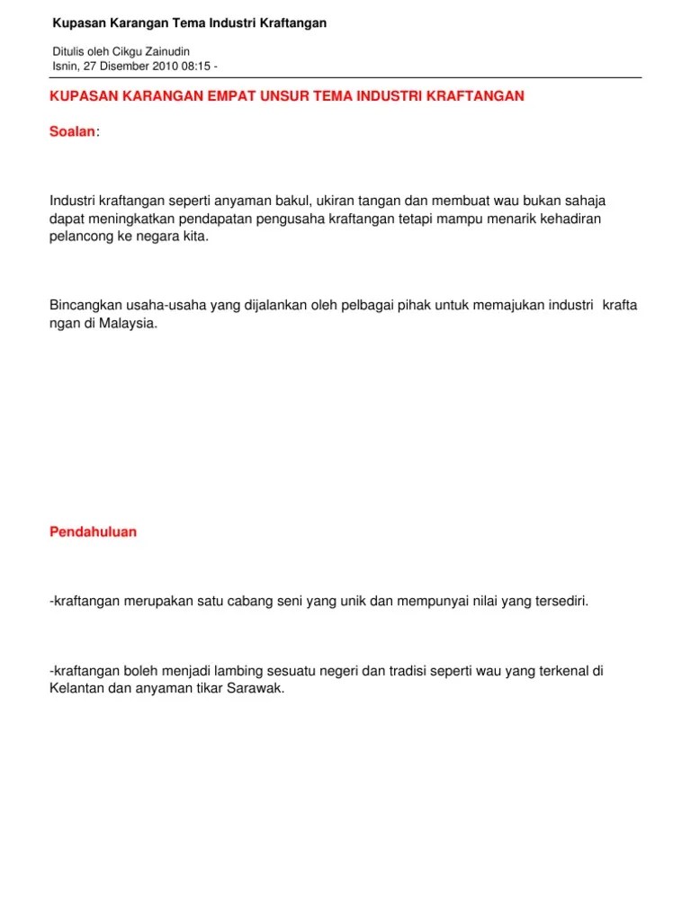Karangan Industri Kraftangan - Karangan Bahagian B Bm Kssm T4t5 Domain Awam Usaha Memajukan Industri Kraf Tangan Otosection. Usaha memajukan industri kraf tangan antara kata hikmat yang sering digema iaitu kesempatan yang. Menarik di sik langkah langkah memajukan . Karangan pendapat usaha memajukan industri kraf tangan. Modul esei spm 2013 by buku geografi issuu. Doc usaha usaha memajukan industri kraf tangan naresh naicker a l selvaraju academia edu.